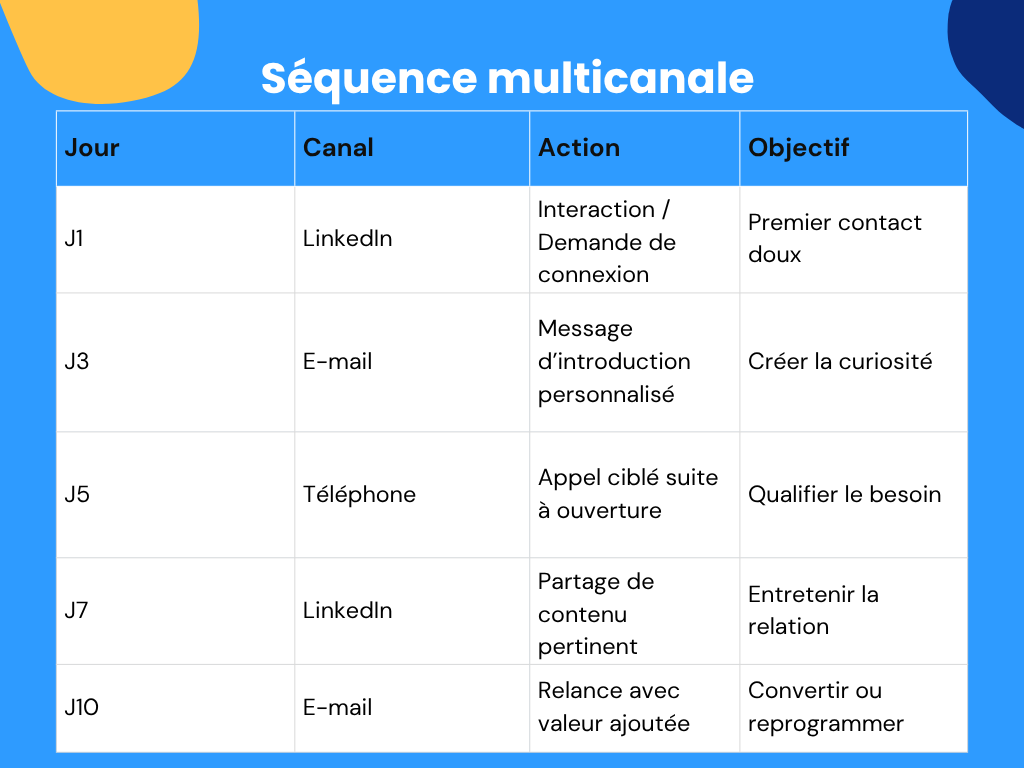 Aujourd’hui, les commerciaux les plus performants orchestrent des séquences de prospection multicanale combinant LinkedIn, e-mail, téléphone, SMS, et parfois WhatsApp.