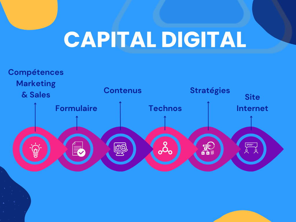Il s’agit de bâtir un écosystème cohérent – un Capital Digital – qui relie vos canaux, vos messages et vos offres autour d’une finalité unique : générer du chiffre d’affaires. L’objectif est de construire un Capital Digital, c’est-à-dire une présence en ligne qui vous permet de générer des clients.